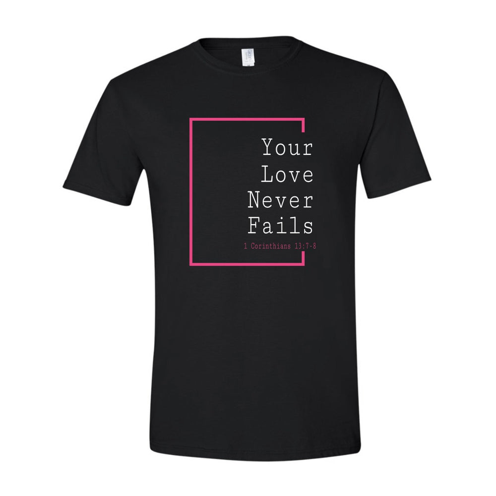 Christ's love cannot fail. No matter what you do that may cause you to stray away, it is impossible for God's love to fail. As the verse says, it always protects, trusts, hopes, and perseveres. A love like Gods is the greatest it gets! Wear this Christian Shirt to be reminded daily!